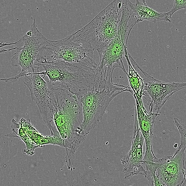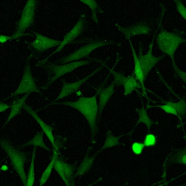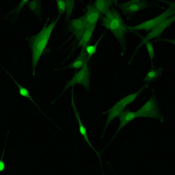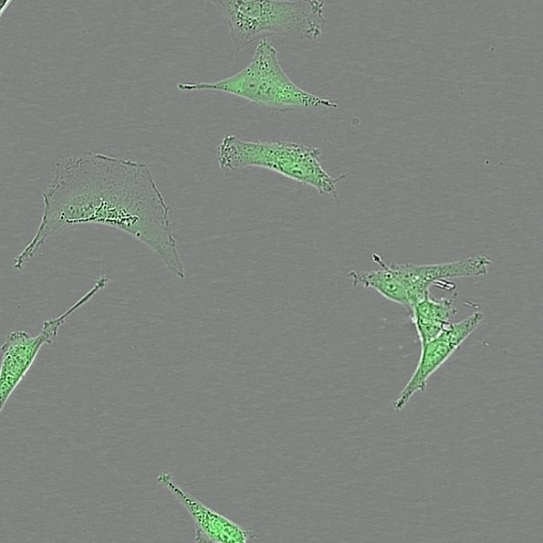 To measure AKT activity in live cells, we employ a fluorescent protein fused to a nuclear export signal (NES) and a nuclear localization signal (NLS) and a specific target sequence for Akt. When Akt phosphorylates this target sequence, the NLS is blocked and the fluorescent protein accumulates in the cytoplasm. The activity is measured by the ratio of cytoplasm to nuclear fluorescence intensity in each individual cell.