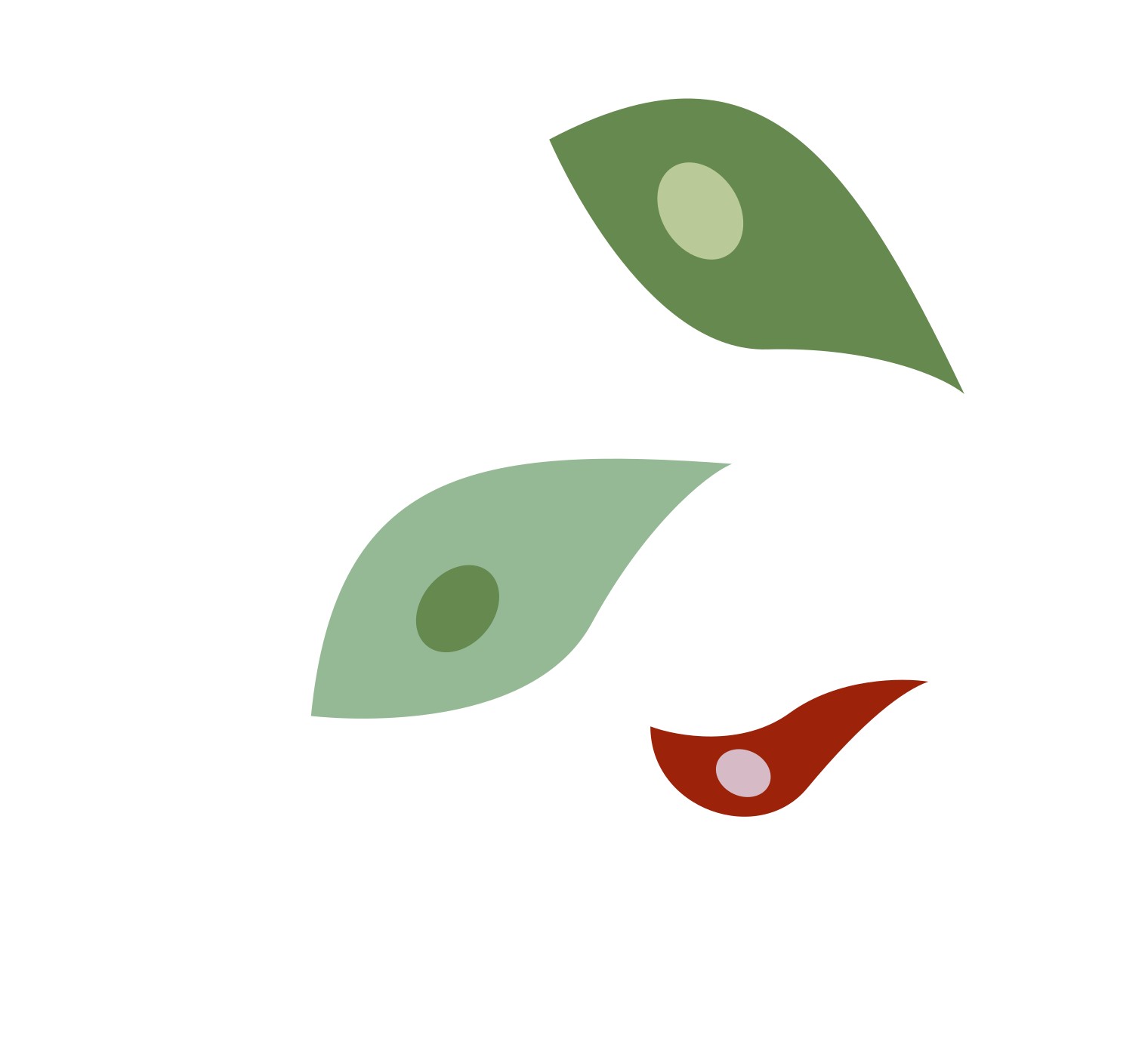 The FusionaBricks are then inserted into the genome of cells, creating FusionaCells, that are human cells expressing fluorescent markers indicating several phenotypes. We have four human cell lines available expressing our genetic markers: